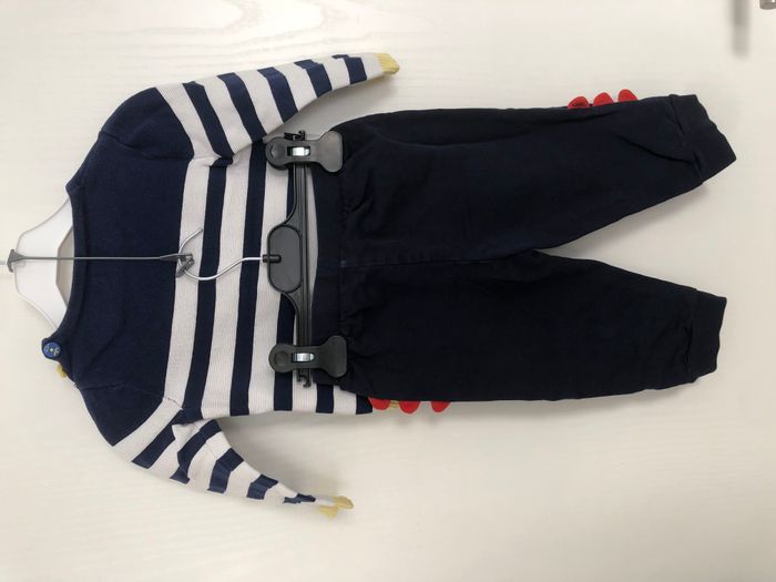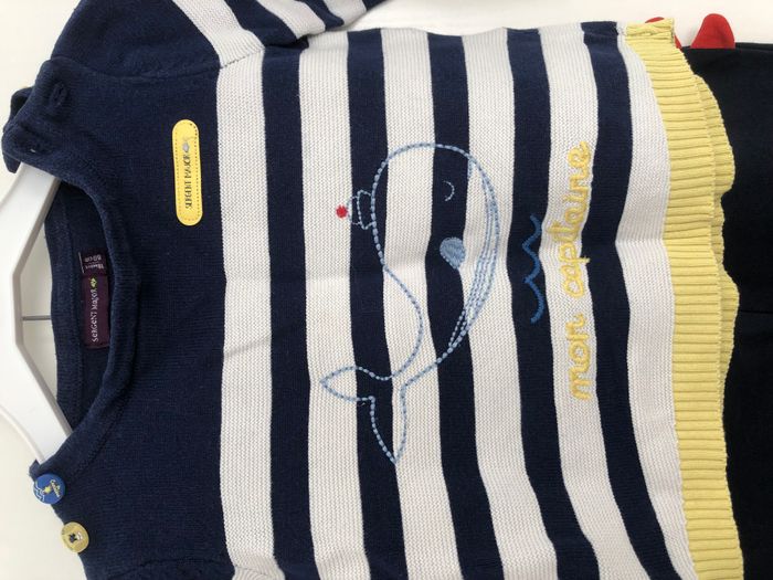 Ensemble garçon composé d'un pull et d'un pantalon élastiqué à la taille. Motif baleine Marque Sergent Major (haut) et Influx (bas) Taille 18 mois