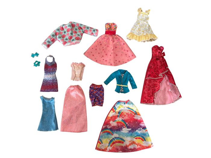 Nom / Type de jouet : Lot de 10 vêtements pour poupée Barbie + 2 accessoires