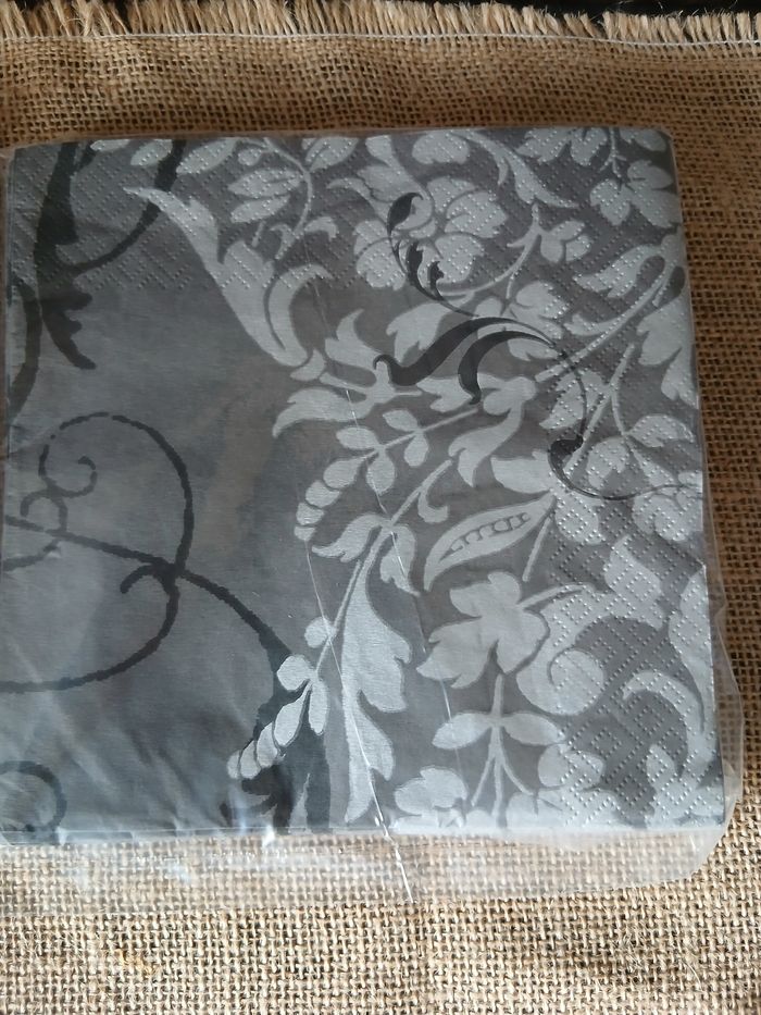 Lot de 8 serviettes en papier style baroque grise argenté noir