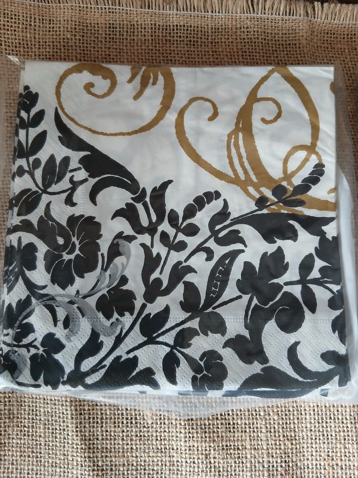 Lot de 12 erviettes en papier style baroque blanche doré argenté noir