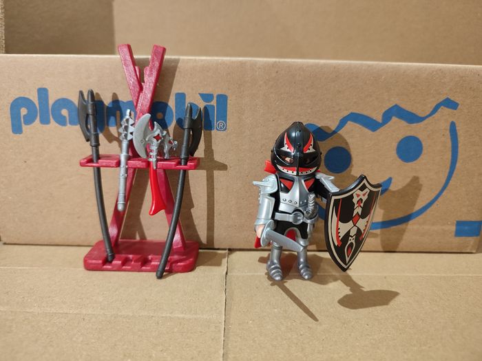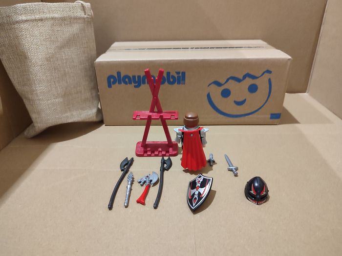 playmobil 70431 chevalier à la hache avec support d'arme complet avec sac