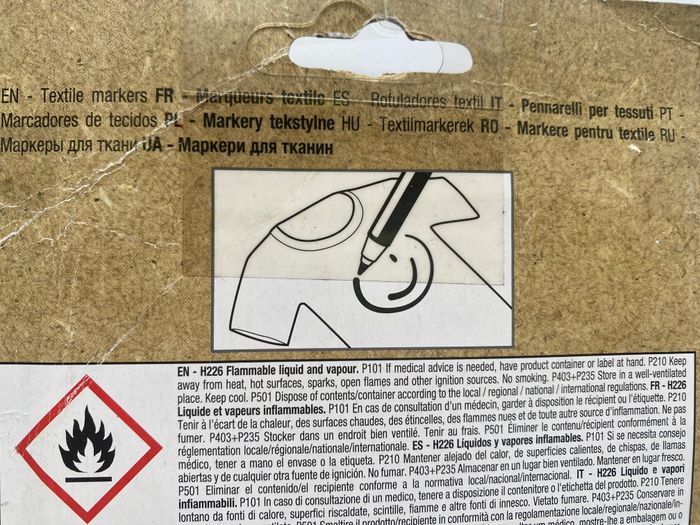 Lot de 6 marqueurs de différentes couleurs pour textile, rouge, verte, bleu, noire, rose et orange. Feutre de 3.4gr/r. En très bon état.