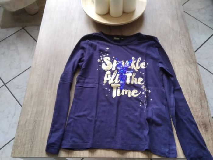 maillot manches longues disney écritures et étoiles dorées brillantes la fée clochette est en sequin en très bon état