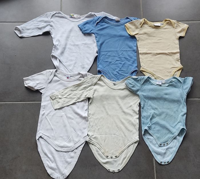 Lot 6 bodies 12 mois: 🔹4 à manches courtes 🔹2 à manches longues Marques: Absorba,Kiabi,C&A Portés mais restent en bon état