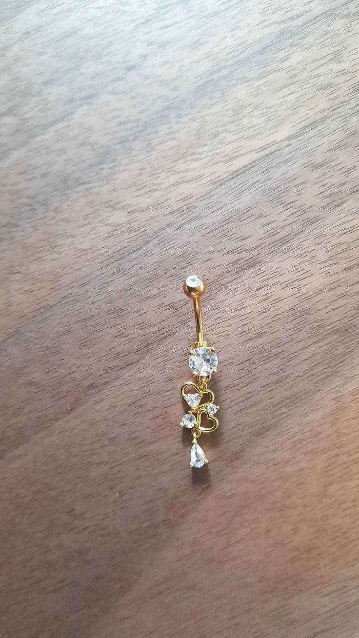 💛 Piercing nombril doré avec cœurs & zircons scintillants 💛