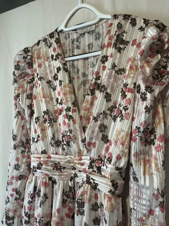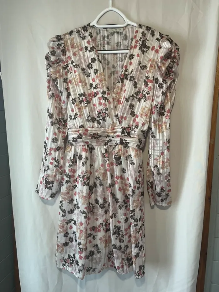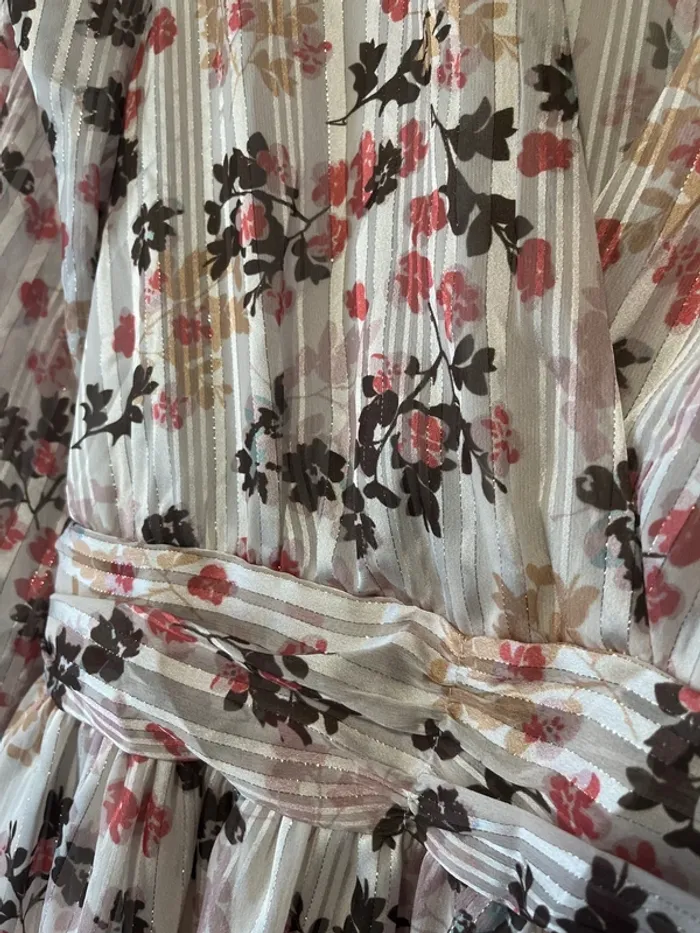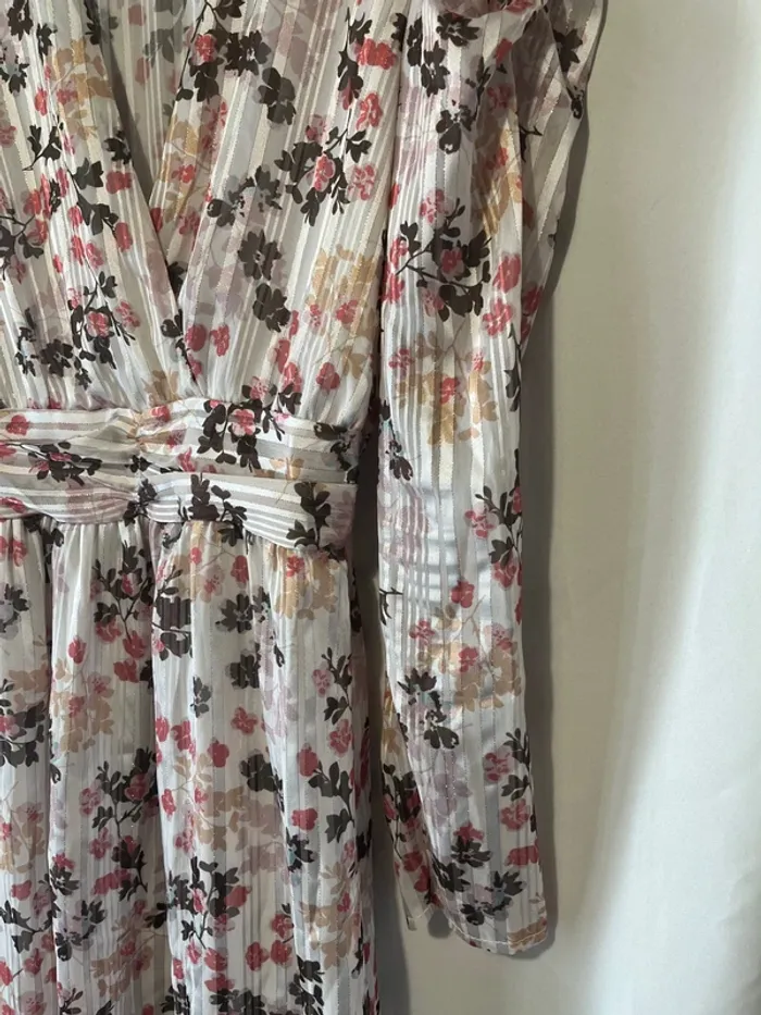 Robe imprimée fleurs Taille unique Trait argenté Manche à recoudre