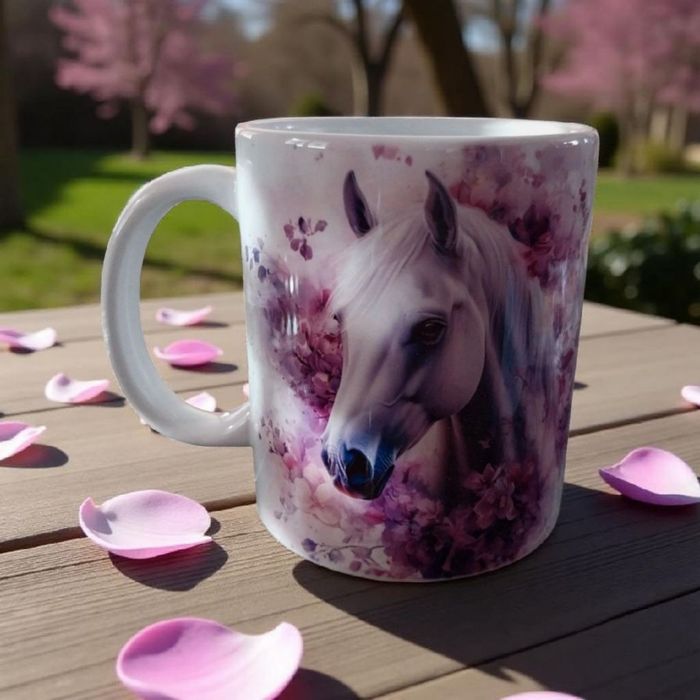 Mug cheval aux douces couleurs.