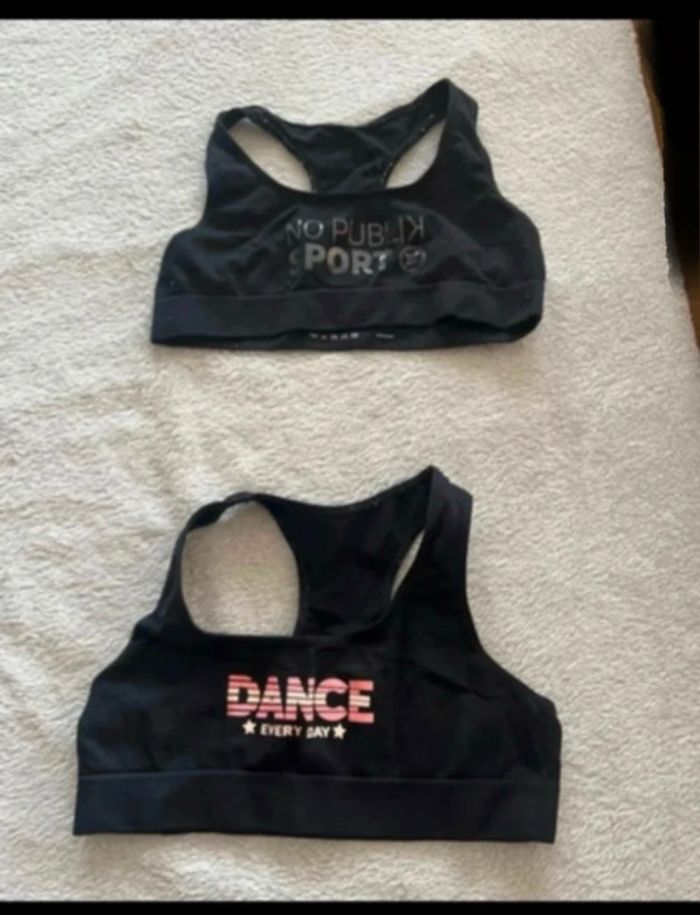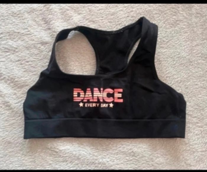BRASSIÈRE FILLE «NO PUBLIC SPORT » «DANCE EVERY DAY » NOIR 14/16 ANS BON ÉTAT 1.29 EUROS