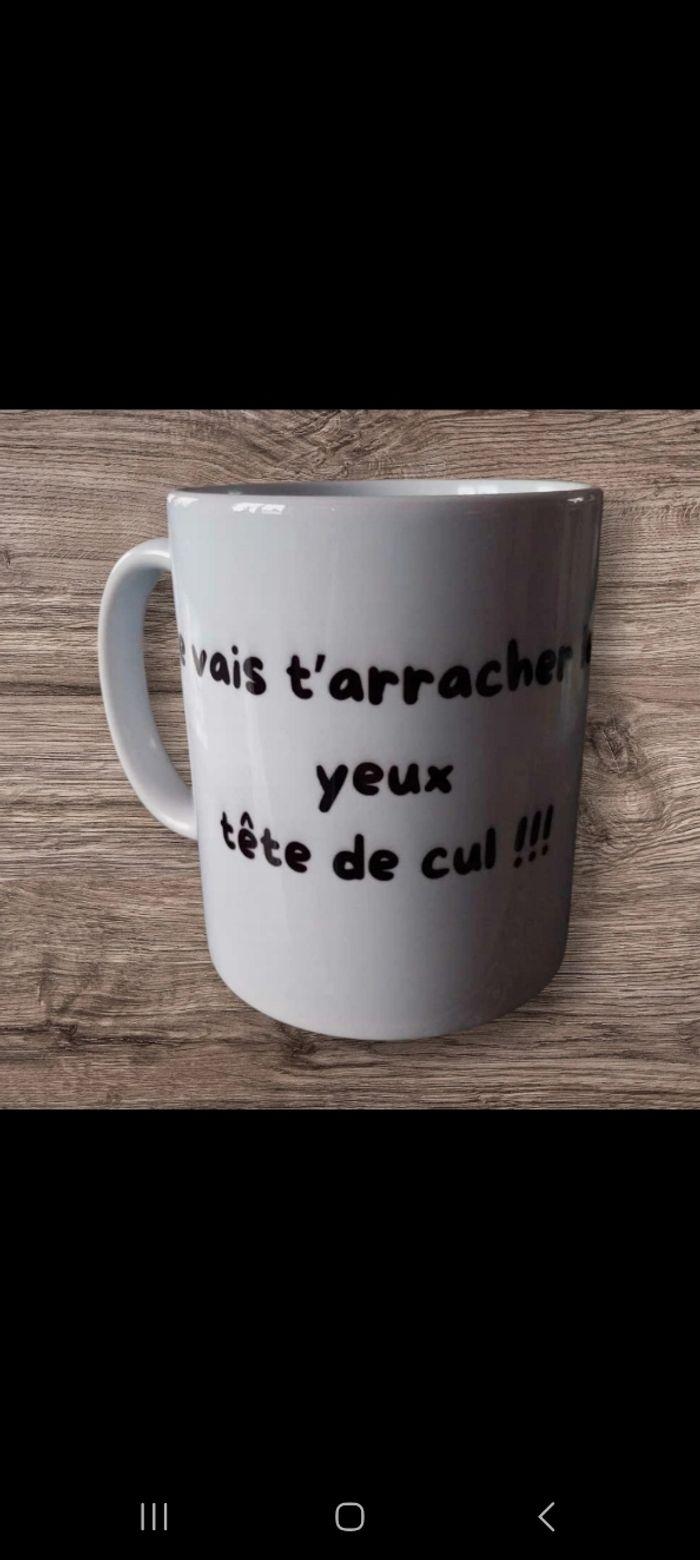 Mug humour j'vais t'arracher les yeux tête de cul...