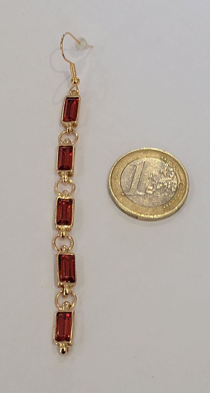 BOUCLES D'OREILLES PENDANTES LONGILIGNE STRASS ROUGE ! NEUVE ! - photo numéro 4
