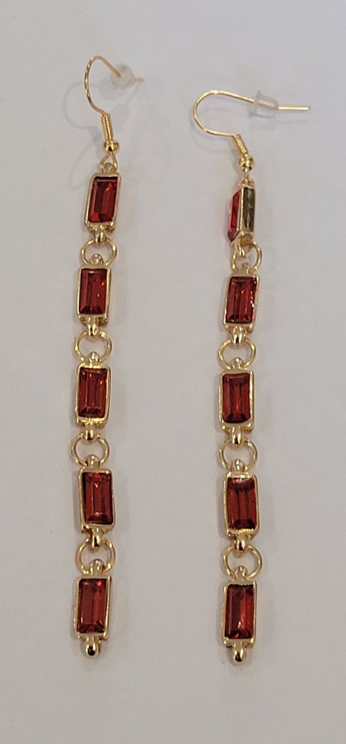 BOUCLES D'OREILLES PENDANTES LONGILIGNE STRASS ROUGE ! NEUVE ! - photo numéro 3