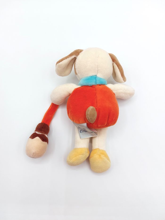 Peluche doudou chien orange blanc écru ancien modèle Doudou et Compagnie grelot gland billes fesses - environ 17 cm Très bon état Envoi rapide Réf A12534 #peluche #chien #doudouetcompagnie #doudou #vintage