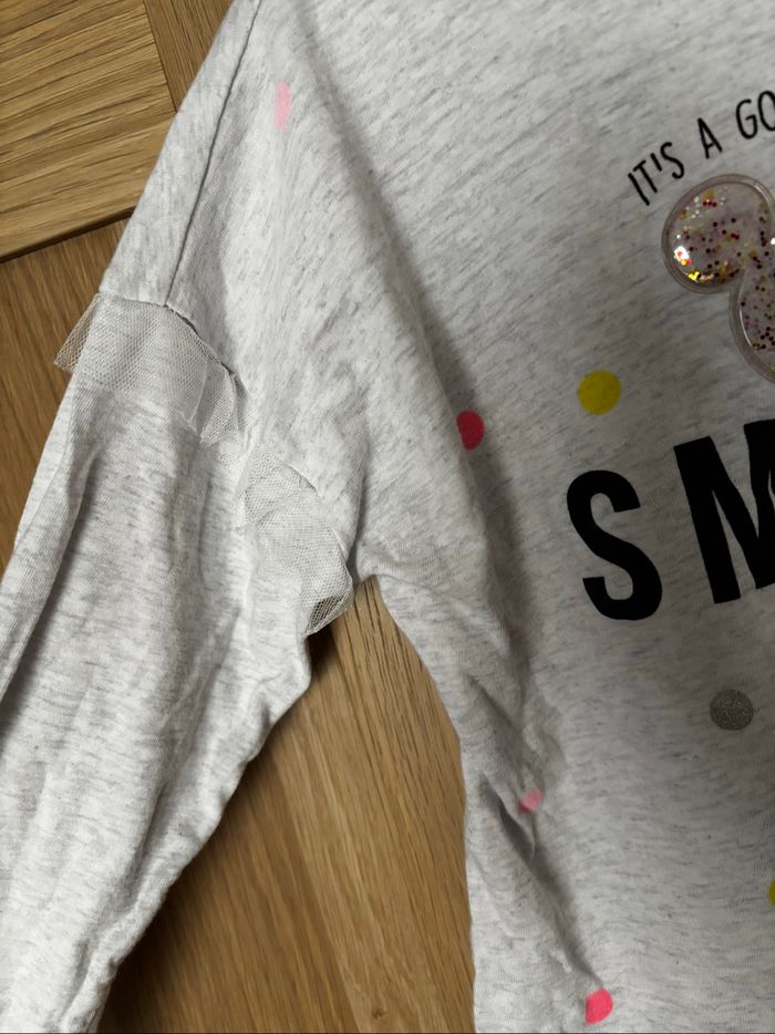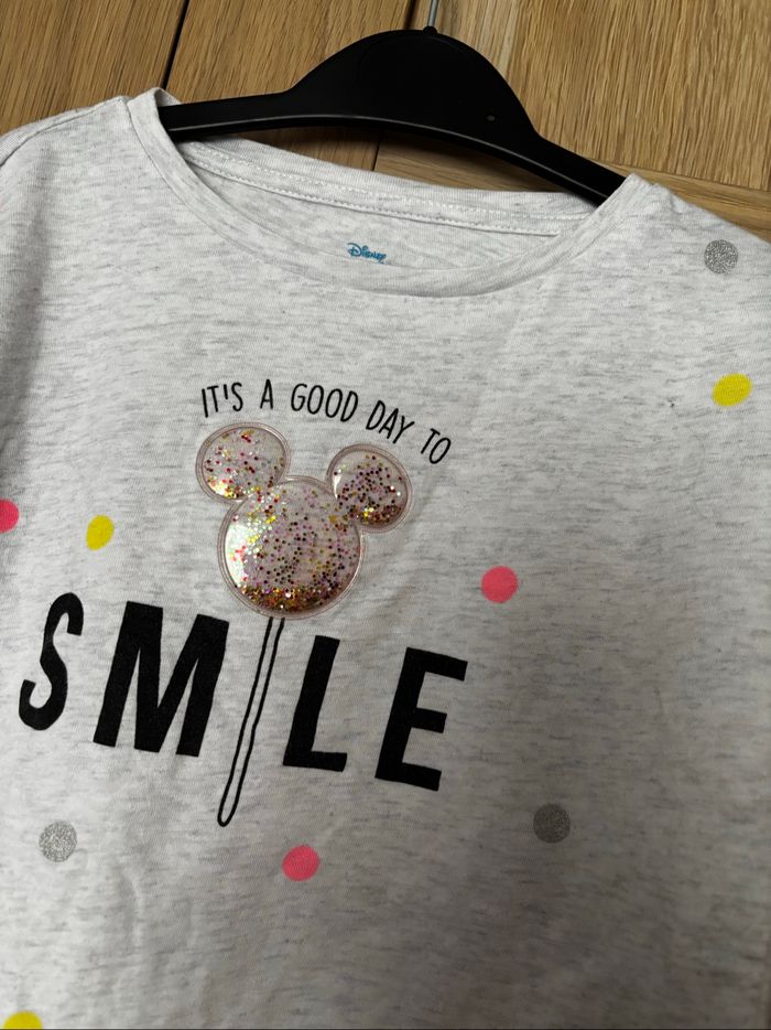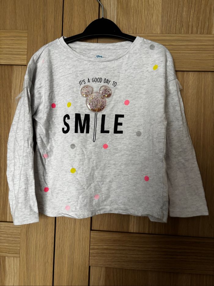 Tee shirt gris clair DISNEY taille 5-6 ans Motif tête de Mickey sucette avec paillettes à l’intérieur / pois argenté jaune rose, volants en tulle sur les manches TRÈS BON ÉTAT #fille5ans #fille6ans #printemps #automne Retrouvez tous mes articles fille 5/6 ans : #ixfeelxinsanefille5ans #ixfeelxinsanefille6ans