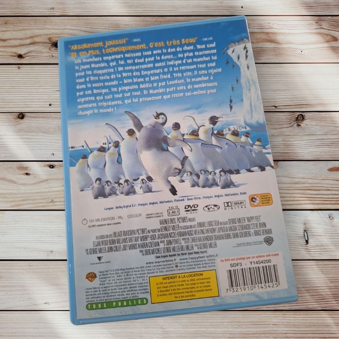 🐧🎶 Happy Feet – DVD magique et plein de bonne humeur ! 💃❄️ Un manchot de l’Antarctique un peu différent 🌨️… Mumble ne sait pas chanter 🎤, mais il danse les claquettes comme un pro ! 👣✨ Un film drôle, touchant et musical qui plaira aux petits comme aux grands ❤️ 💿 DVD en très bon état ✅ Testé et fonctionnel 🎬 Titre : Happy Feet 👗✨ N’hésite pas à jeter un œil à mes autres annonces ✨ 👉 Vêtements de toutes tailles, ainsi que des jouets, livres, chaussures & bien plus encore ! 💕 🐧 #kimiee_dvd 🐧 #HappyFeet #DVDEnfant #FilmFamilial #FilmAnimation #CinemaKids #PenguinLove #ManchotDanseur #ComedieMusicale #BonMoment #FilmADecouvrir #CineSoirée #FamilleTime #MovieNight #FilmPourTous #AnimationMagique #ClassiqueDisneyStyle #KidsFun #DVDCollection #Cinephile #AnimationFans