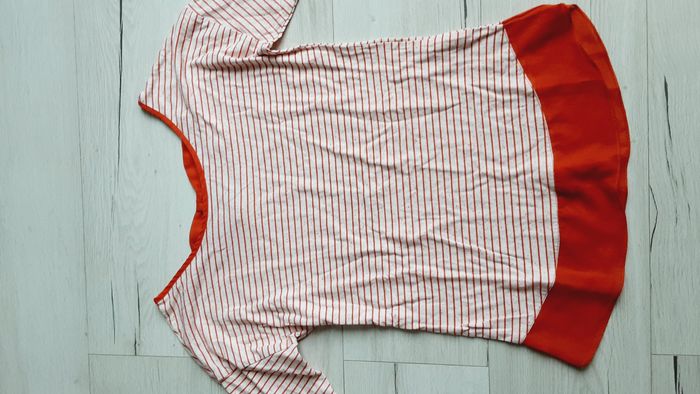 Vêtement femme top haut tee-shirt manches mi longues rayé orange et blanc Camaïeu S - photo numéro 1