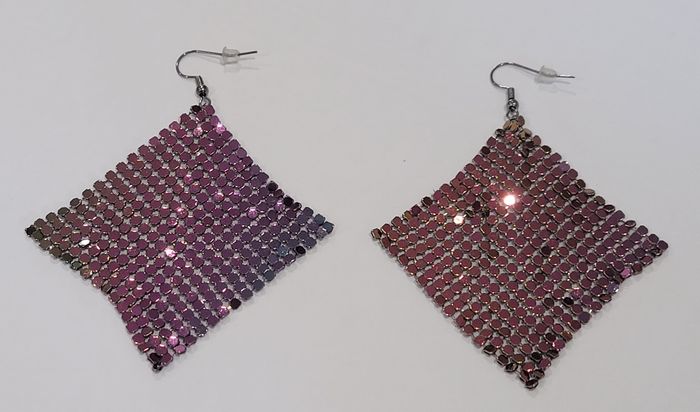 BOUCLES D'OREILLES DISCO SEQUIN ROSE ANNEE 80 , FETES ! NEUF ! - photo numéro 1