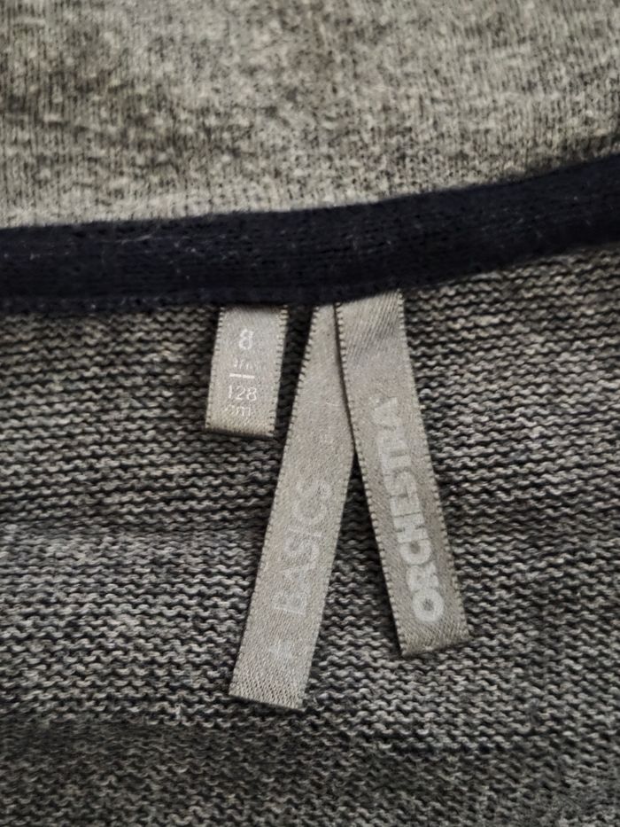 💰 Réductions activées sur les lots Envoi rapide et soigné Ce gilet zippé à capuche de la marque Orchestra est parfait pour le quotidien • ​Couleur : Bleu marine • ​Taille : 8 ans (128 cm) • ​Matière : 100 % coton, doux et agréable à porter • ​État : Bon état général, bien entretenu. Il n'y a ni taches, ni trous. ​Il possède des rayures grises sur les manches et le long de la fermeture éclair, ainsi des petite poche sur le côté. Idéal pour la mi-saison !