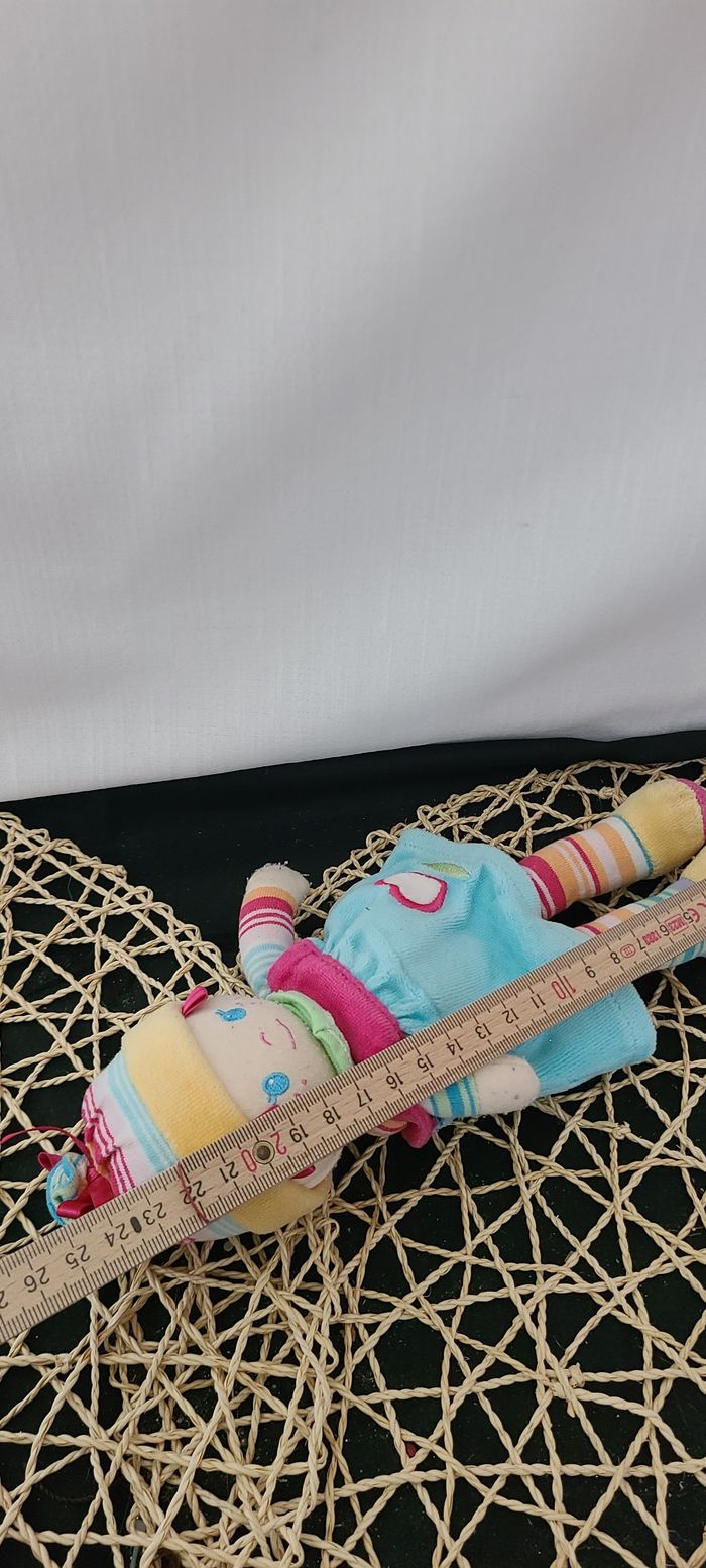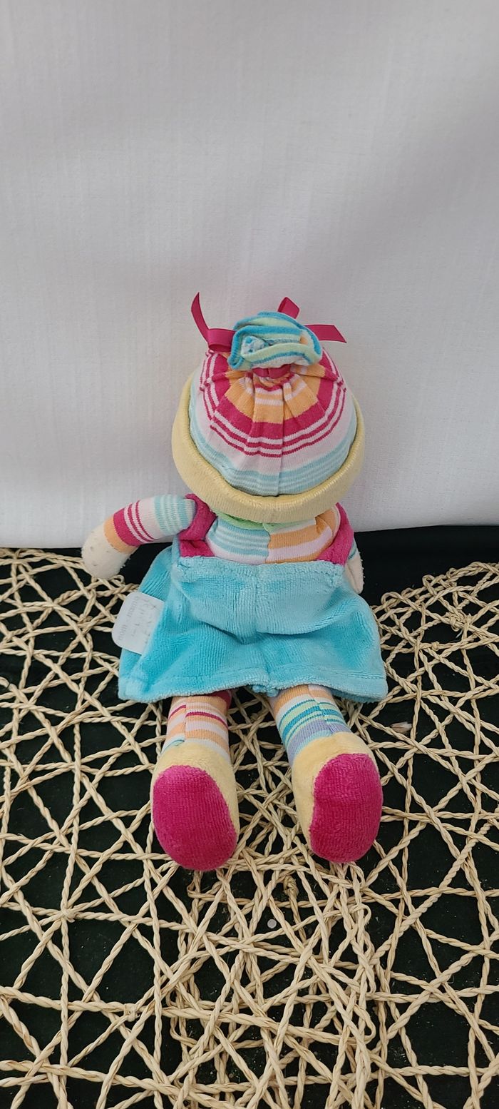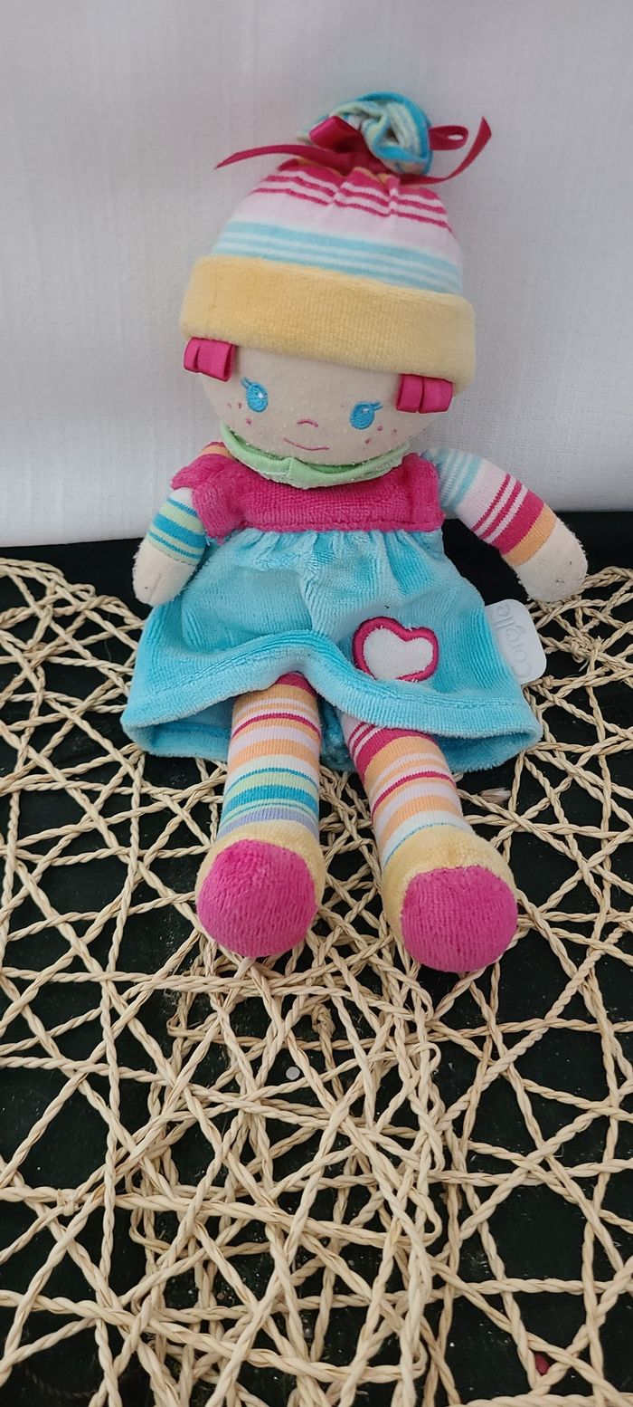 Poupée chiffon COROLLE robe fleuris chapeau rose 2009 22 cm
