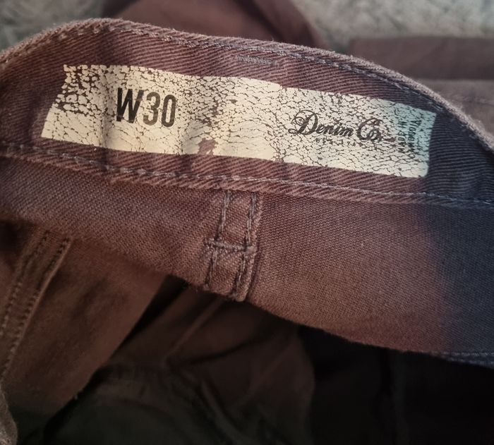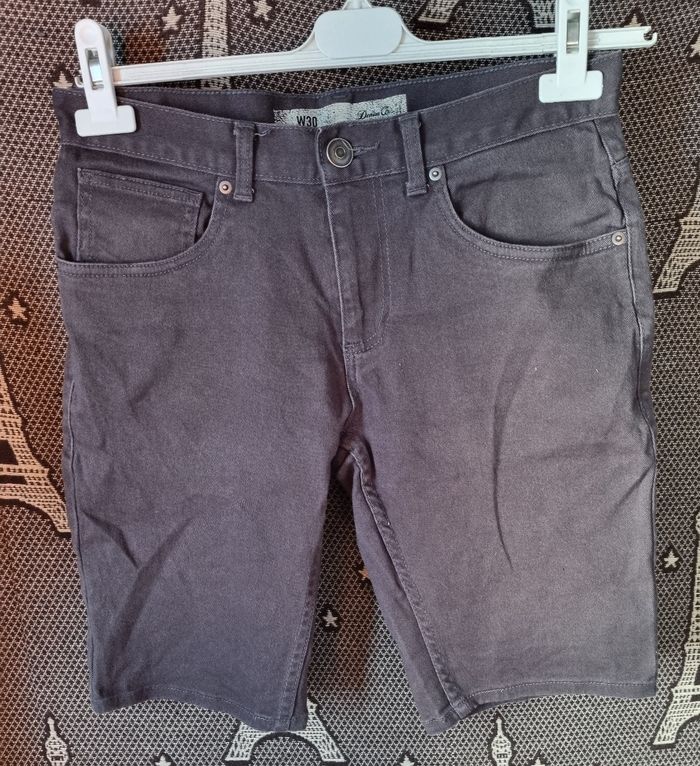 Bermuda gris en jean, fermeture zippée avec bouton, taille W30 marque Denim co,longueur 48cm, largeur de la taille 39cm, largeur cuisse 25cm, largeur genoux 18cm.