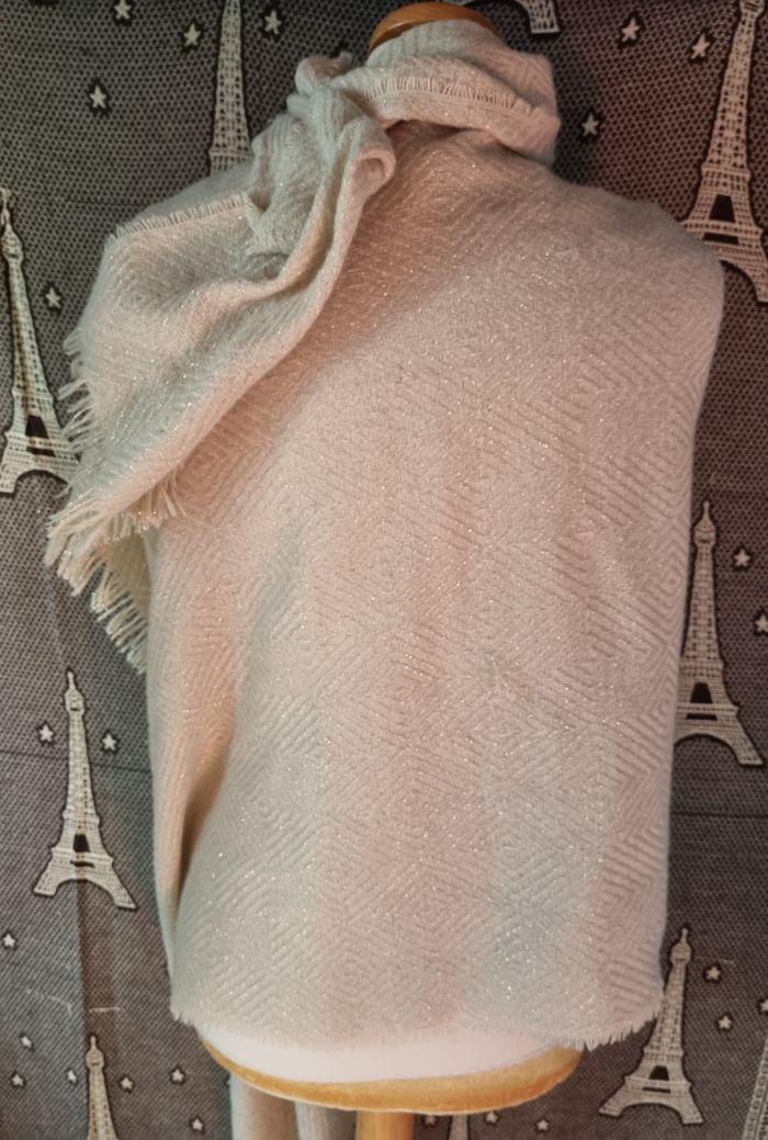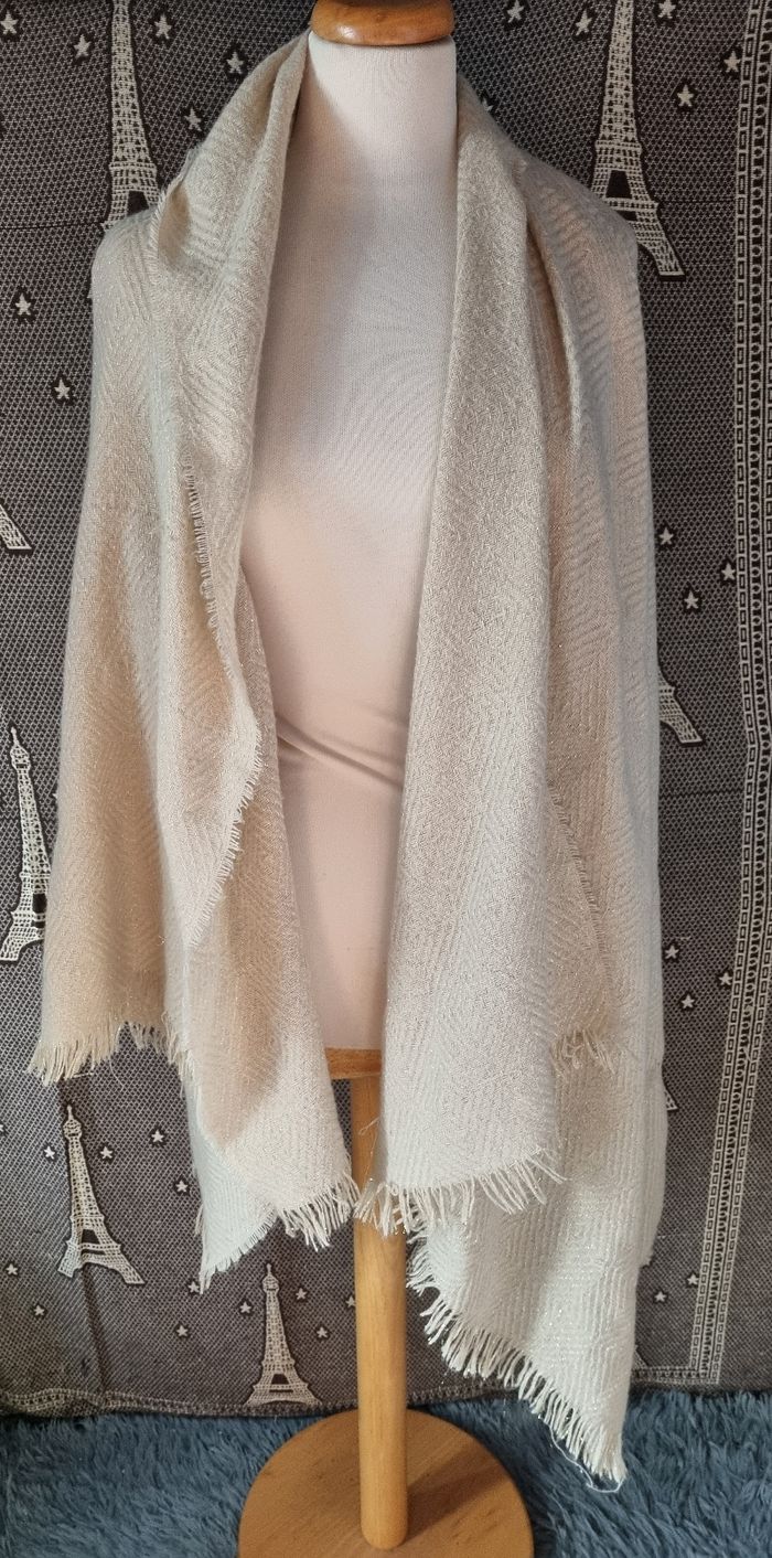 Étole (châle) crème et doré pailleté, taille Unique, défaut voir dernière photo.