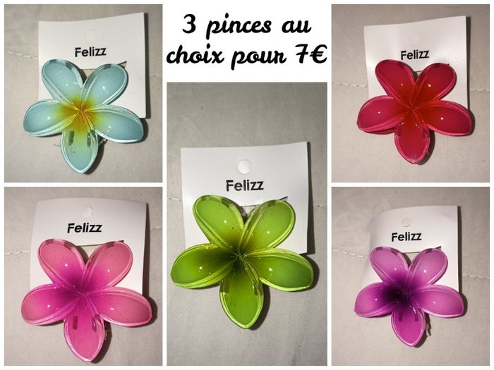 Lot de 3 pinces fleurs au choix Diamètre 8 cm Neuf , étiqueté