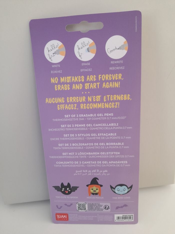 Coffret neuf de 3 stylos effaçables Halloween 2024, édition limitée. Legami Milano.