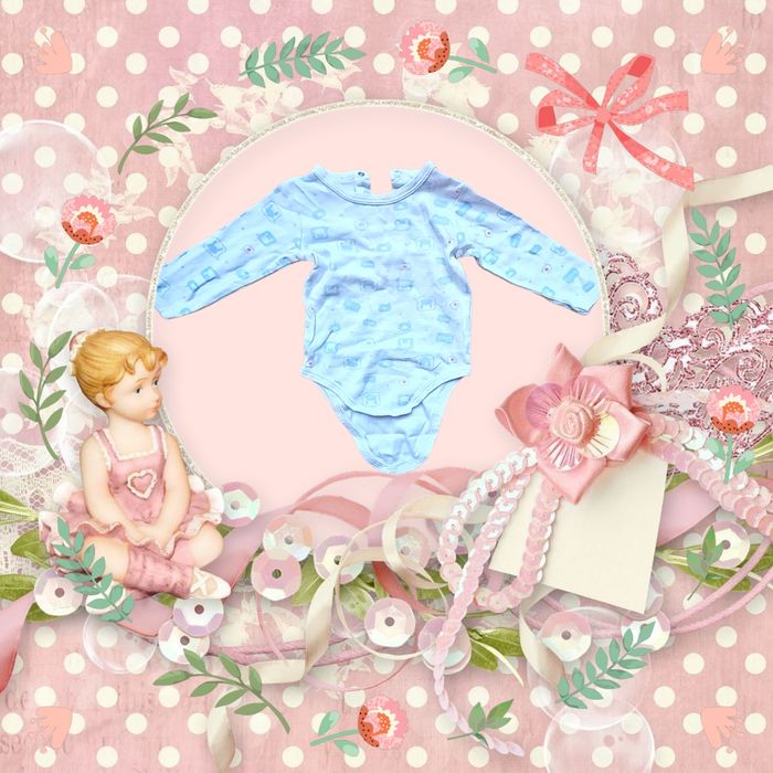 👶 Body manches longues, blanc à motifs rigolos  bleu pour bébé fille taille 3/6 mois