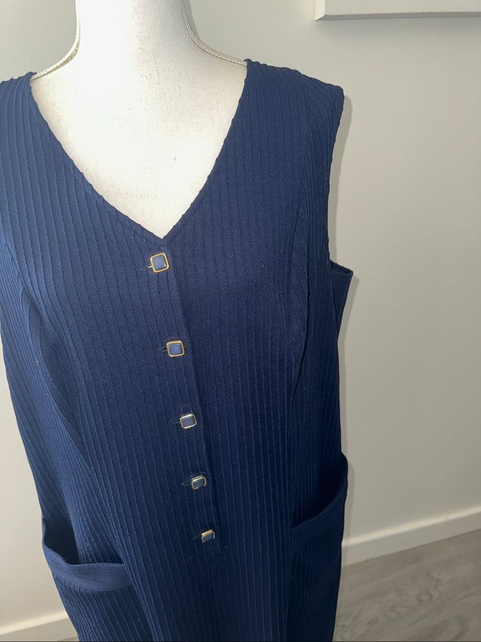 Robe côtelée à rayures bleu marine Vintage T50 5XL - photo numéro 4