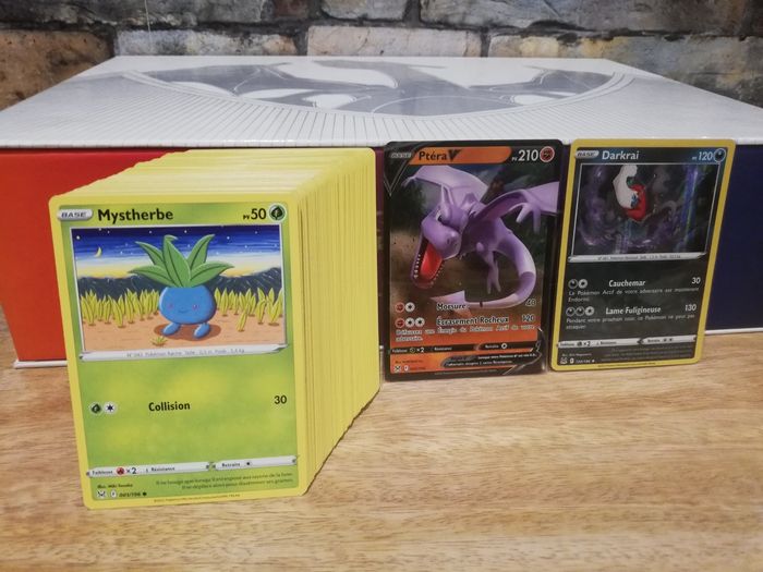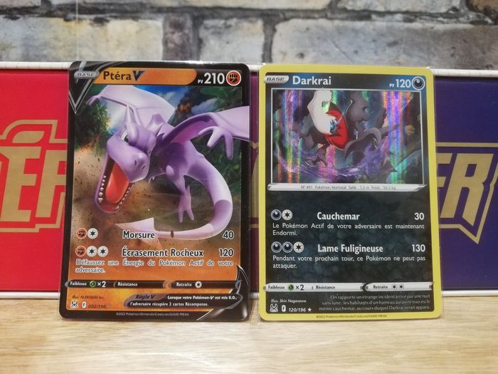 Lot de 129 cartes de la série Origine Perdue : 127 cartes communes, peu communes et rares, Ptera V et Darkrai Holographique