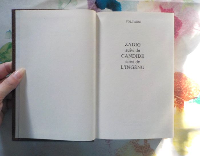 ROMANS ET CONTES ZADIG suivi de CANDIDE suivi de L'INGENU de VOLTAIRE Ed. d'Antan Très bon état Les dorures sont uniformes même si sur la photo ce n'est pas évident