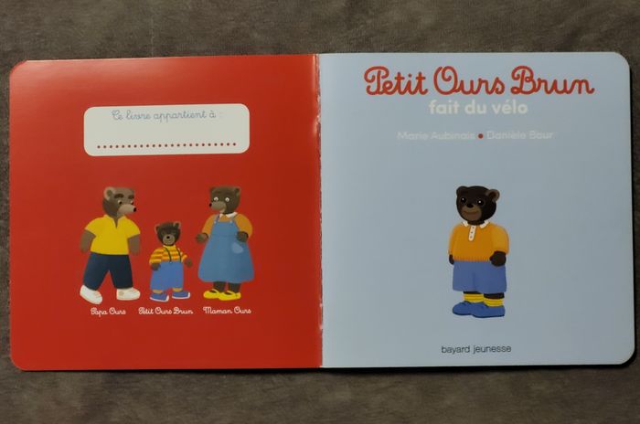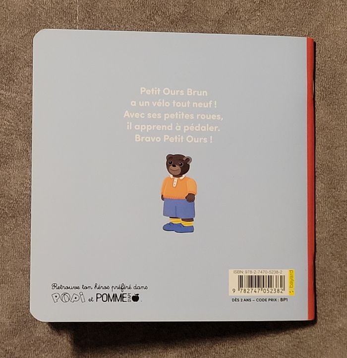 Bonjour, Je vends ce livre nommé - Petit Ours Brun fait du vélo - Dès 2 ans Marie Aubinais, Danièle Bour (Illustrations) - en très bon état. Si vous rechercher un livre ou un acteur en particulier et pour gagner du temps, n'hésitez pas à me le demander, je vous répondrais dès que possible 😇 Veuillez vous abonner pour recevoir toutes les nouveautés Pour autres infos n'hésitez pas à me contacter. ***** Merci de votre visite *****