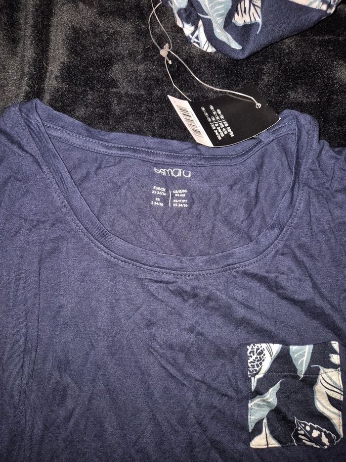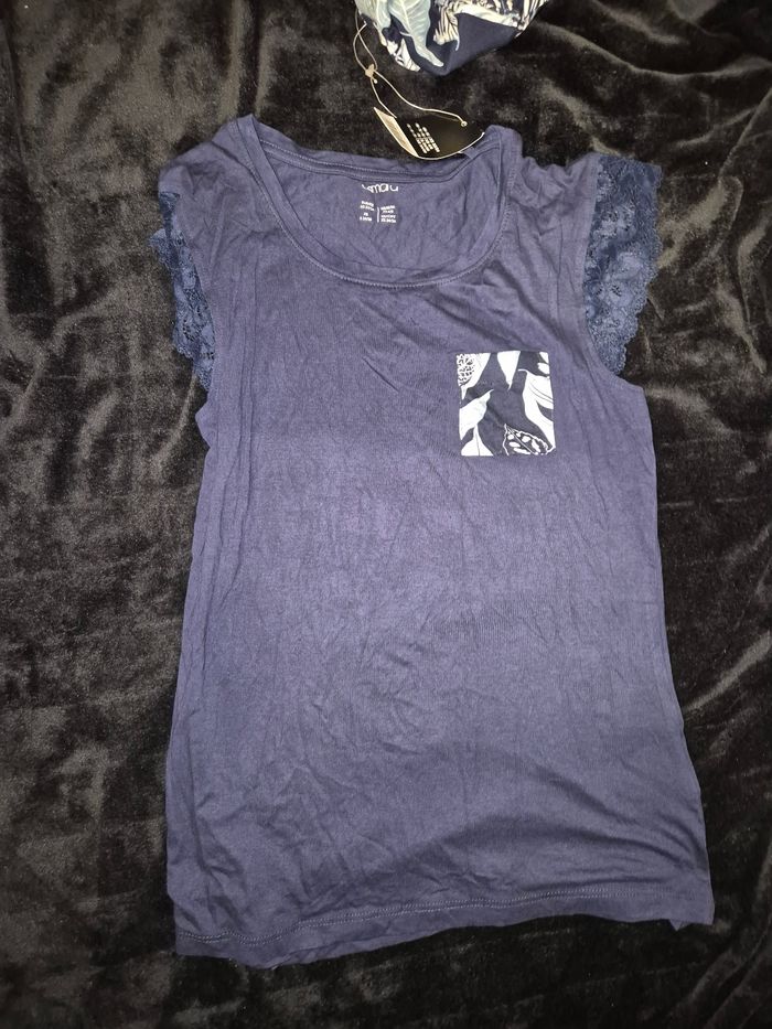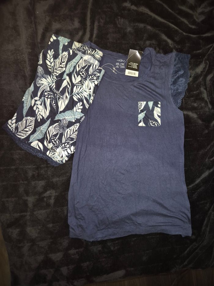 ▪︎Pyjama 2 pièces tee-shirt + short ▪︎Bords dentelle ▪︎Taille xs ▪︎Neuf avec étiquette ▪︎Bleu marine