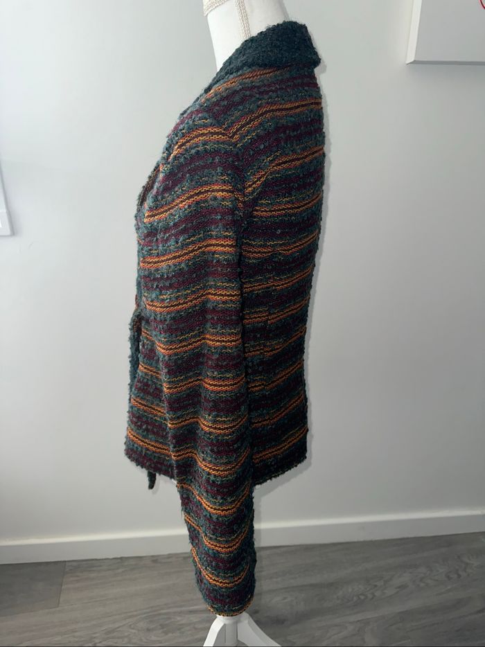 Cardigan cache cœur en laine et mohair vert foncé marron et orange Vintage T42 XL - photo numéro 3