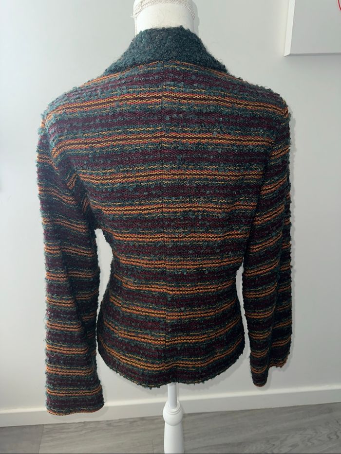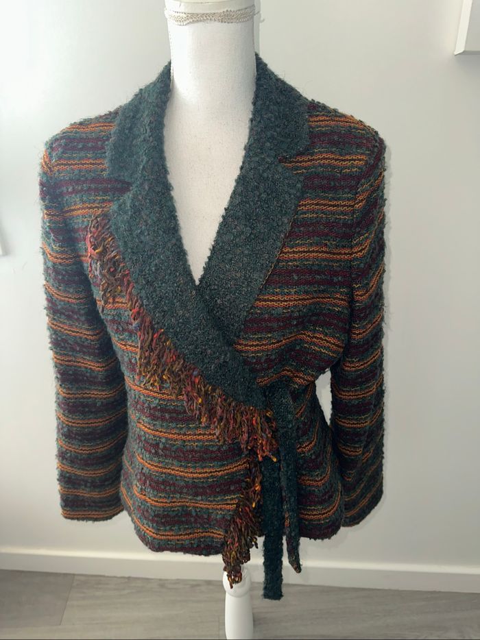 Cardigan cache cœur en laine et mohair vert foncé marron et orange Vintage T42 XL - photo numéro 2