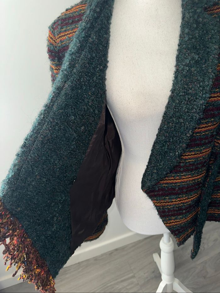 Cardigan cache cœur en laine et mohair vert foncé marron et orange Vintage T42 XL - photo numéro 7