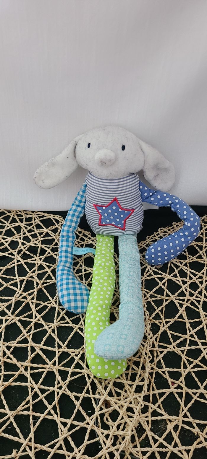 Chien ou lapin HEMA doudou bleu et vert à motifs - photo numéro 1