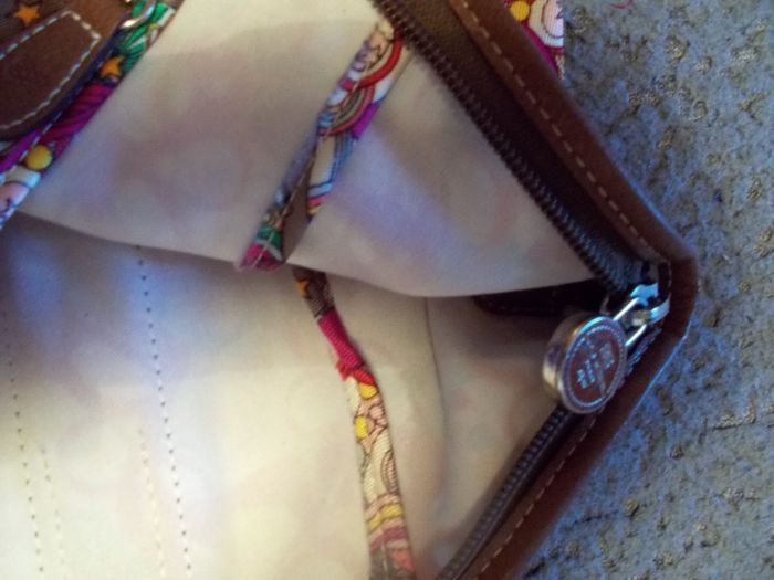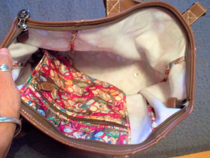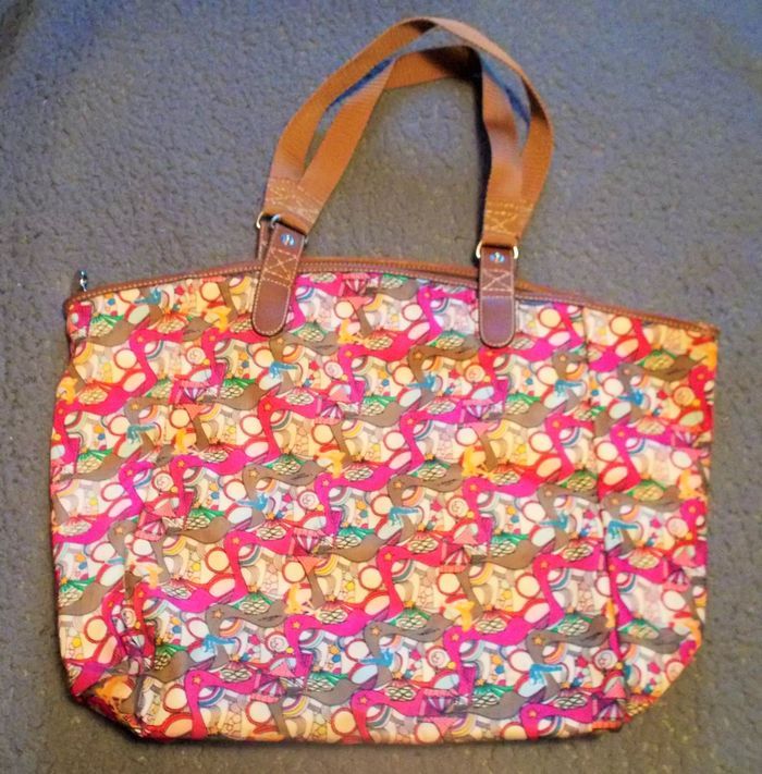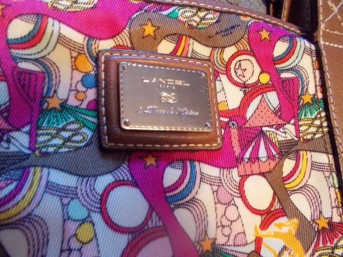 Sac Shopper "Lancel", en tissu dèperlant multicoloré, dimensions: 45 cm x 34 cm, bé, prix définitif.