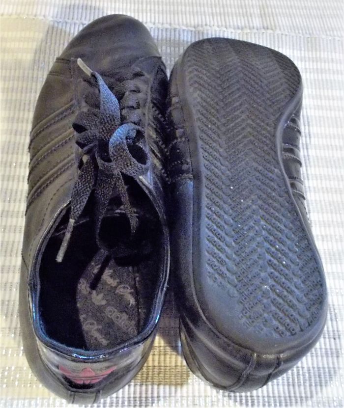 Sneakers "Adidas", Sleek Series, en cuir couleur noir, fermeture à lacets, pointure 36, tbé.