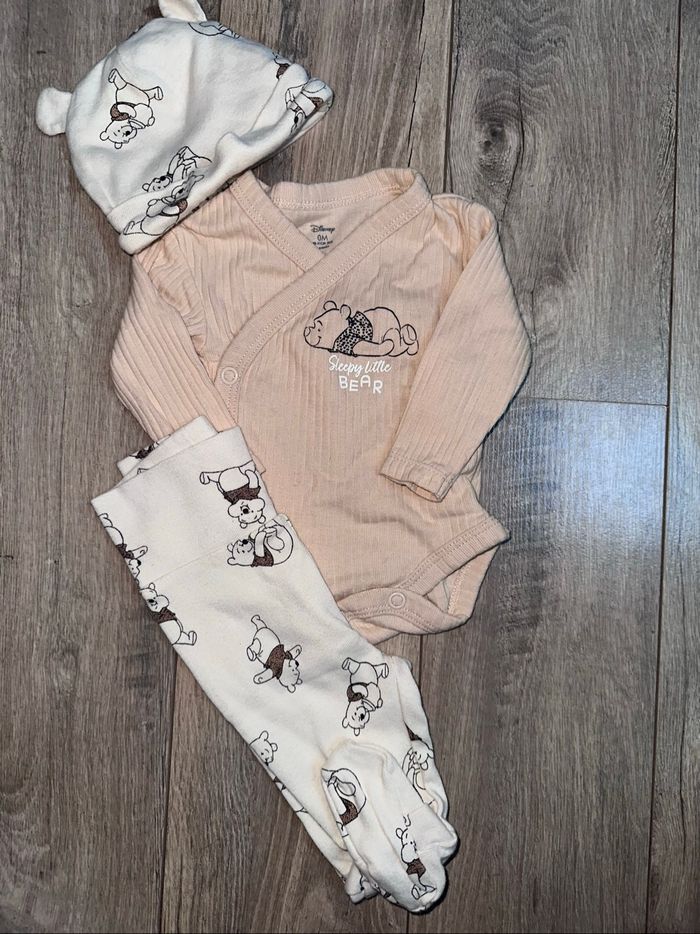 Ensemble Disney collection Winnie l'ourson. Taille naissance Body manches longues avec bonnet et legging avec pieds