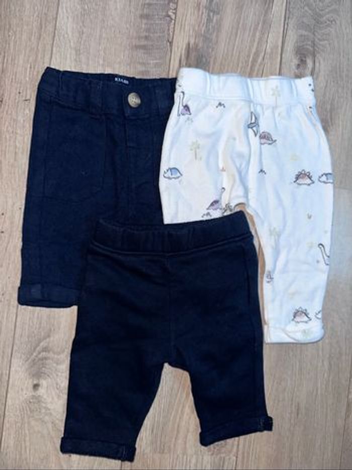 Je vends ce lot contenant un pantalon, un legging et un jogging. Seulement le jogging et le legging ont été portés et le jogging a une petite tache blanche à l’arrière. Taille 1 mois.