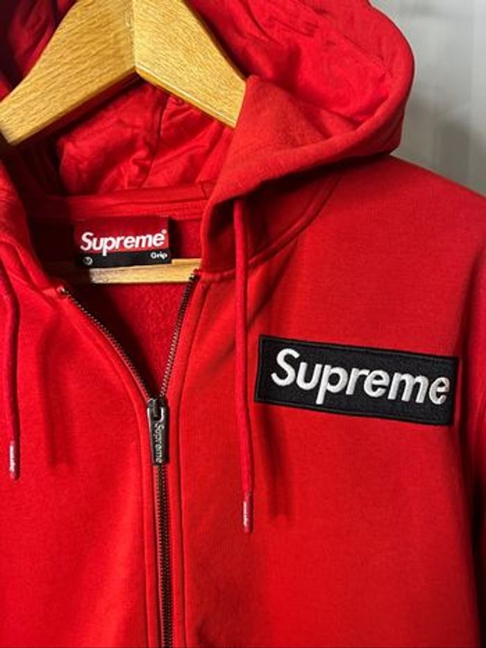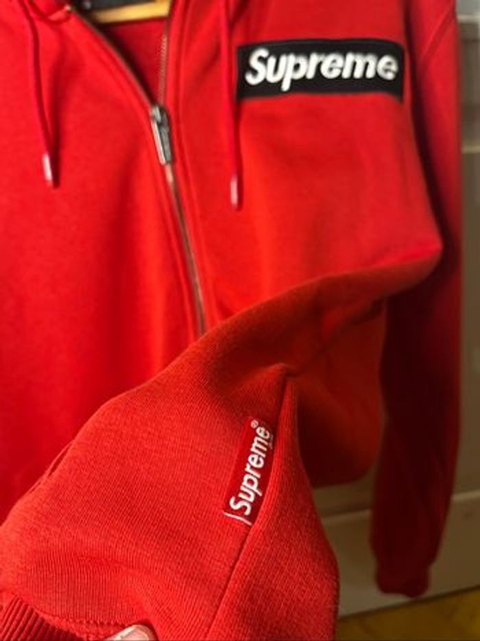 Sweat pull Supreme Couleur rouge Logo brodé noir Capuche et zip Taille L Envoi rapide et soigné. D'autres articles de marques dans le dressing. N'hésitez pas à faire des lots pour obtenir😉