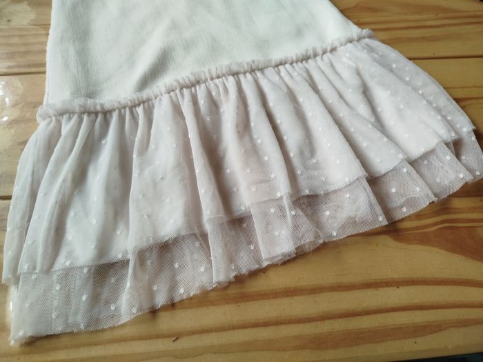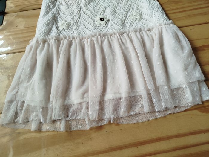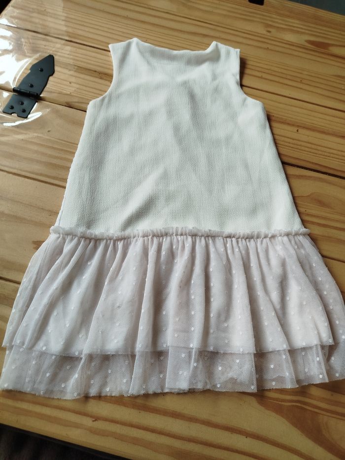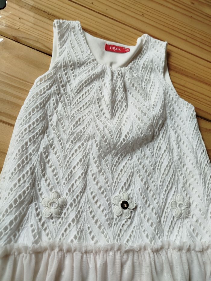 Robe blanche marque tissaia taille 5 ans bas de la robe en tulle devant a motif derrière uni