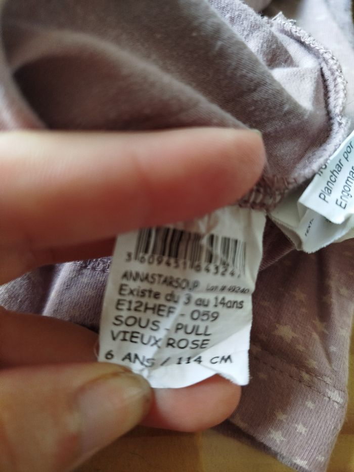 Maillot manche longue couleur vieux rose motif étoile marque dpam taille 6 ans