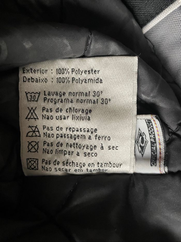 Manteau de la marque Rip Curl Taille L La fermeture de la poche gauche est cassé (voir photo) Présence de petites taches sur le gris au dos (voir photo) Occasion, état satisfaisant