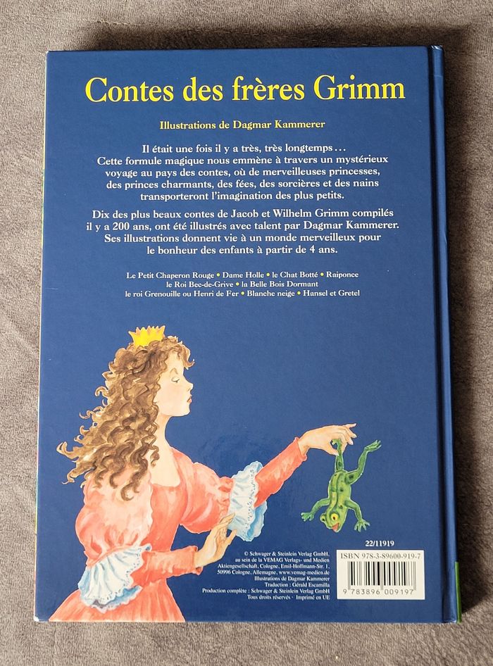 Bonjour, Je vends ce livre nommé - Contes des freres Grimm Jacob Grimm - en très bon état. Si vous rechercher un livre ou un acteur en particulier et pour gagner du temps, n'hésitez pas à me le demander, je vous répondrais dès que possible 😇 Veuillez vous abonner pour recevoir toutes les nouveautés Pour autres infos n'hésitez pas à me contacter. ***** Merci de votre visite *****