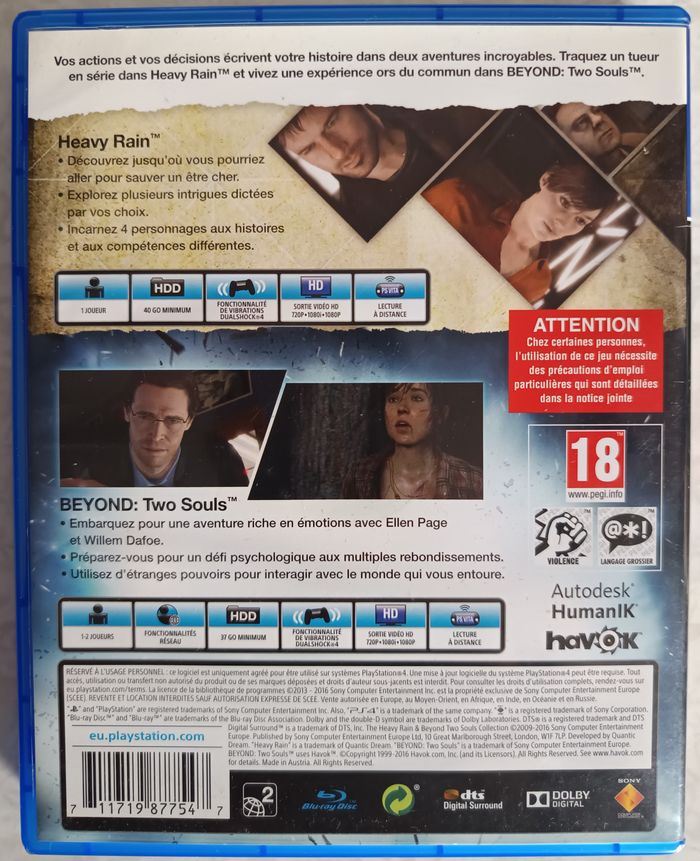 La Collection Heavy Rain Et Beyond Two Souls (2 jeux en 1) PS4 Playstation 4 VF - photo numéro 3