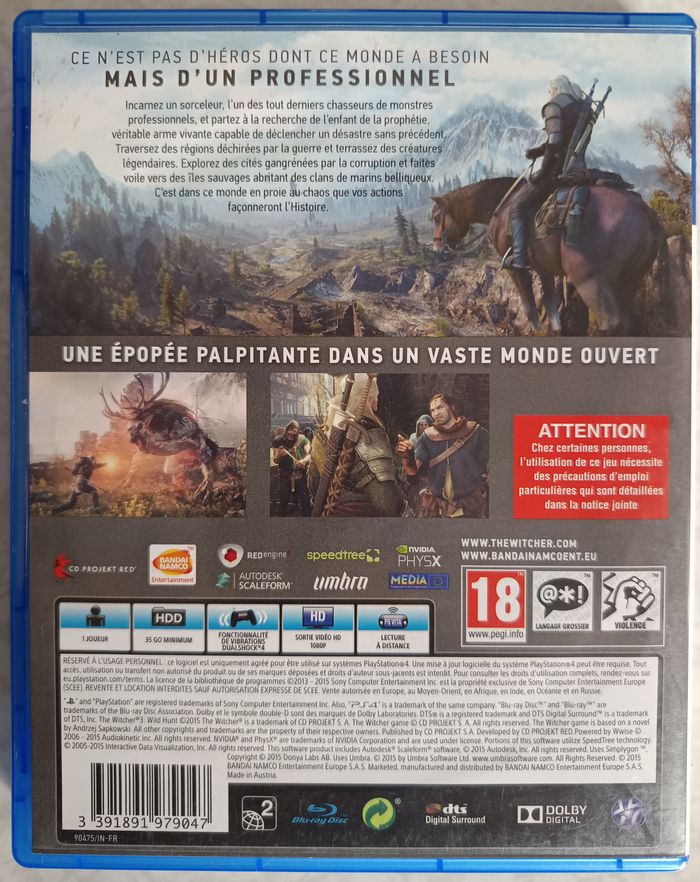 SONY - PLAYSTATION - PS4 - The Witcher 3 : Wild Hunt - PAL FR notices incluses - photo numéro 3