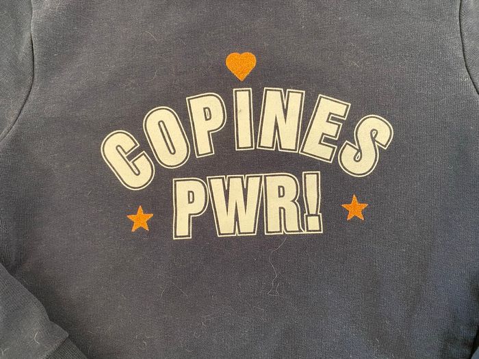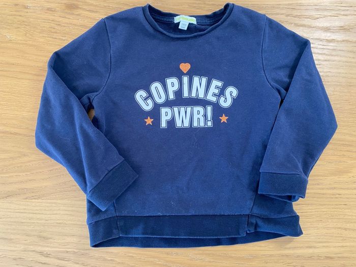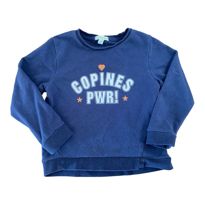Sweat fille « Copines Power » Marque : Vertbaudet Taille : 6 ans Couleur : bleu marine