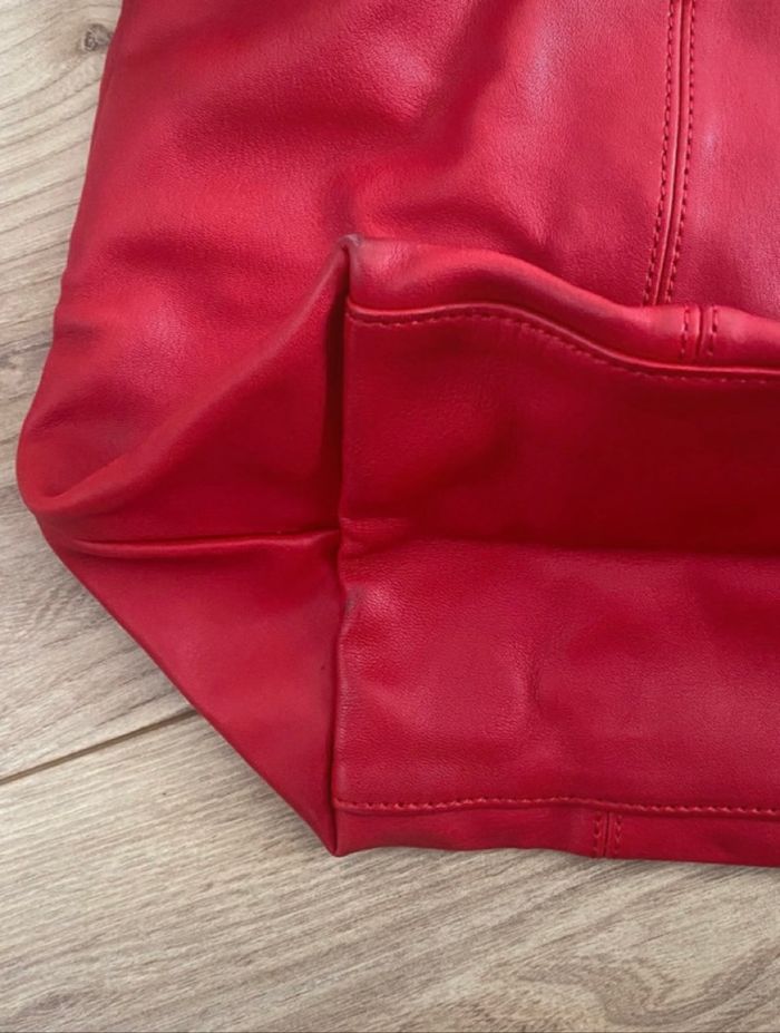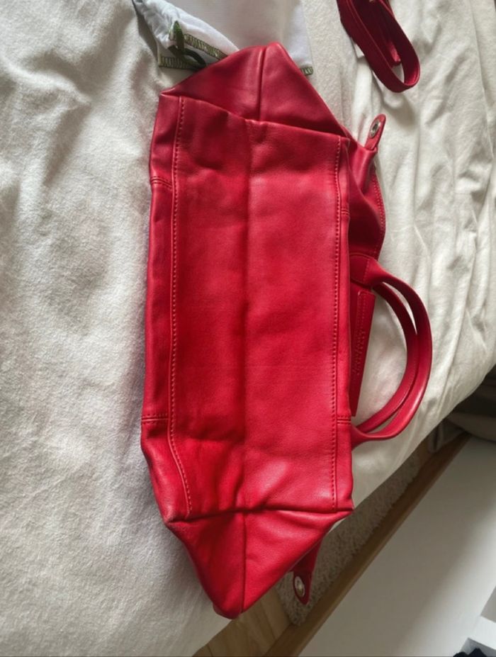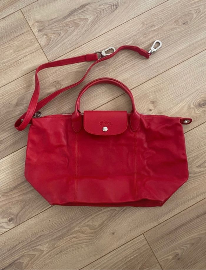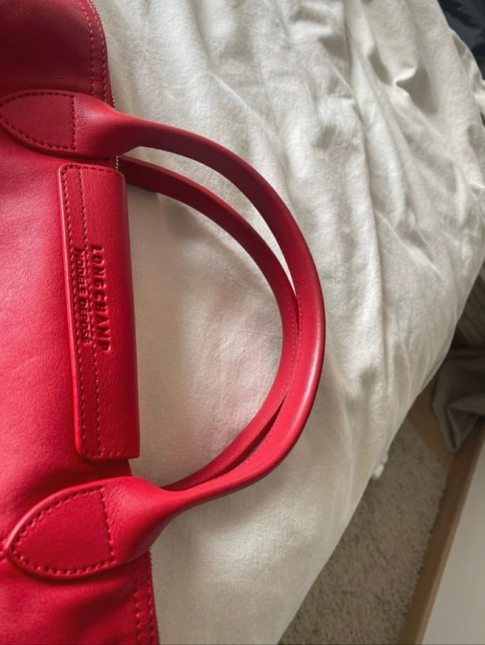 Sac pliage Longchamp en cuir souple rouge. Avec bandoulière et dust bag. Taille M. En excellent état, seul les coins sont légèrement abîmés (voir photo)