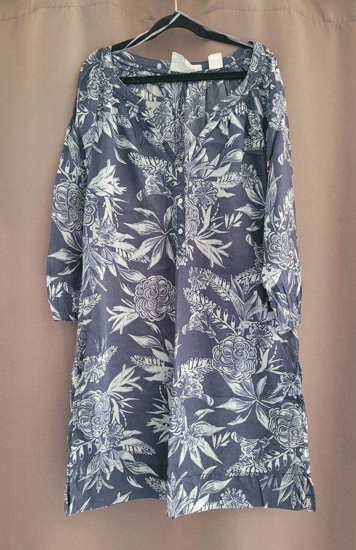 Robe fluide, dans les tons bleu, légèrement transparente, de la marque L.O.G.G de chez H&M, taille 36, en très bon état. Article lavé pour la vente.